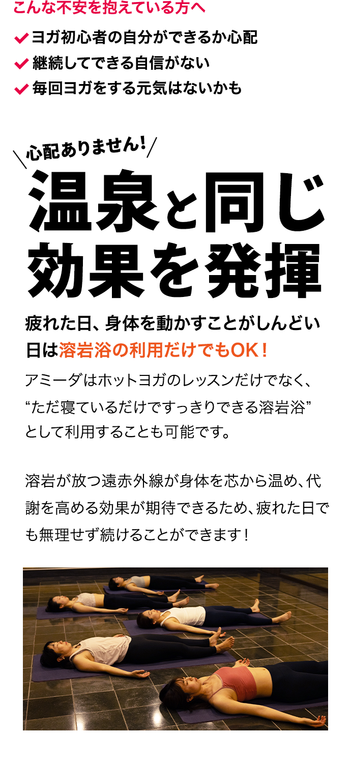 アミーダなら溶岩×ヨガでワンランク上のデトックス体験をご提供することができます。