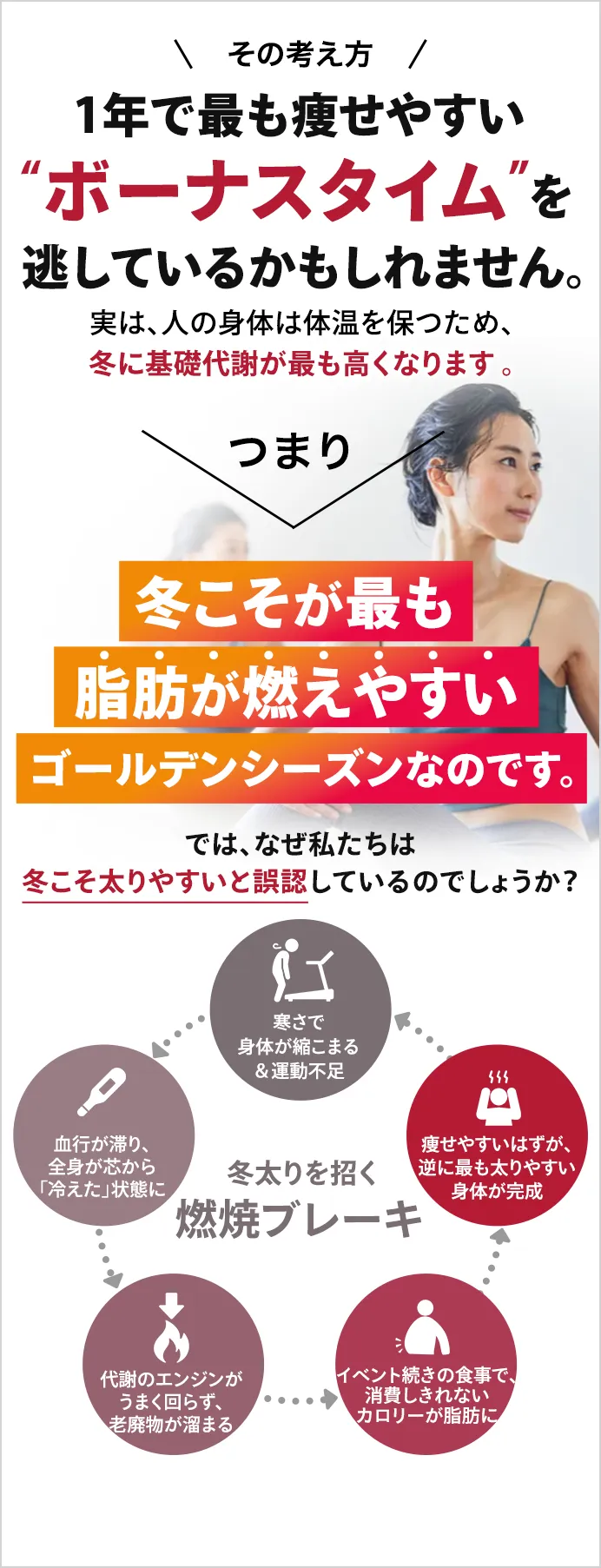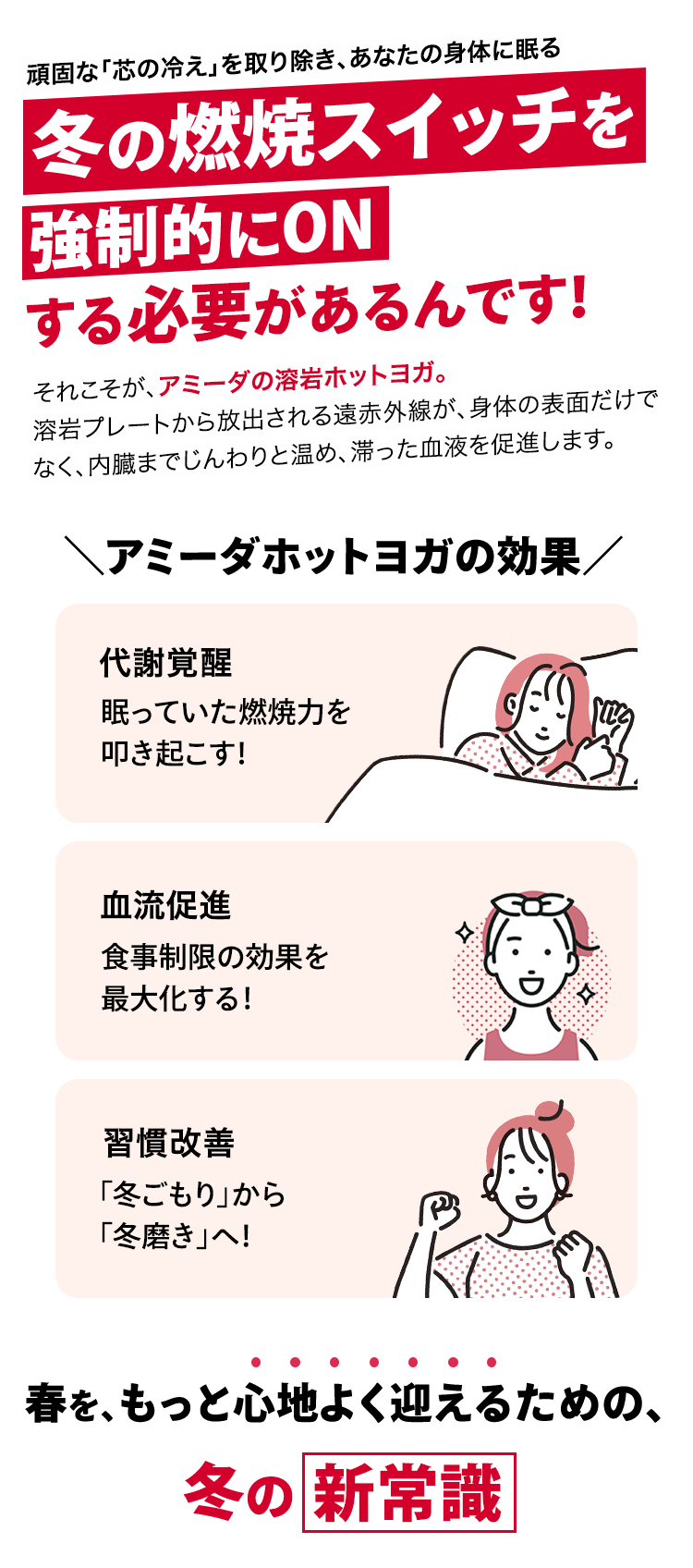 健康や体型に気を使い、サウナや岩盤浴に通い始めたあなた こんな悩みありませんか? 「汗を流しているけど、痩せた気がしない」「スッキリしたと感じるのは一時的」「体型の変化をなかなか感じることができない」それもそのはず、体型は「汗をかくこと」だけでは直接的に変えることはできません。